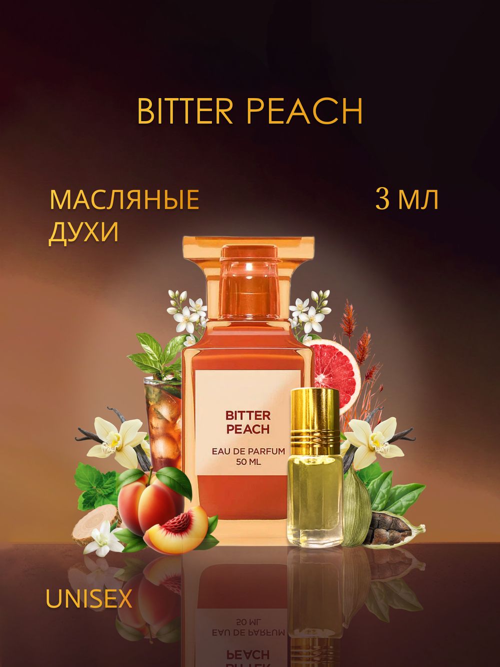 Первые минуты знакомства с композицией Tom Ford «Bitter Peach» (Горький персик) уносят за собой в очаровательный мир отборных восточных специй и зрелых экзотических плодов. Ее раскрытие начинается с роскошных нот манящего гелиотропа, пряного кардамона, сладкого персика и жизнерадостного апельсина. Постепенно в ней начинают проявляться насыщенные оттенки сексапильного жасмина, крепкого коньяка, горьковатой полыни и страстного кубинского рома. Глубокий шлейф букета привлекает внимание многогранными переливами волнительного кашмерана, нежной ванили, загадочных бобов тонка и благородного сандала.