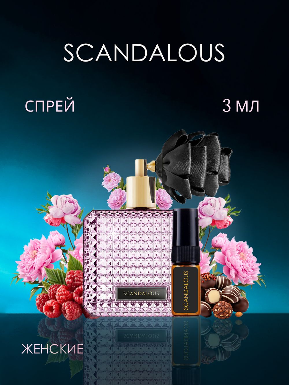 Scandalous («Скандальный») – цветочный фруктовый аромат для женщин, представленный парфюмерным брендом Victoria's Secret в 2014 году. Эта осенняя новинка заявлена как шквал сексуальности, в котором вполне можно пропасть. Обладательница данного аромата обладает природным даром обольщения. Scandalous лишь усилит ее привлекательность, эффектно завершив смелый образ, и заставит участиться биения сердец окружающих. Открывается аромат Scandalous от Victoria's Secret соблазнительным аккордом малинового ликера. В сердце доминирует таинственный черный пион. В завершении звучит база, где акцент сделан на сладкое пралине. Верхние ноты: малина Ноты сердца: пион Базовые ноты: пралине Группа ароматов: фруктовые, цветочные