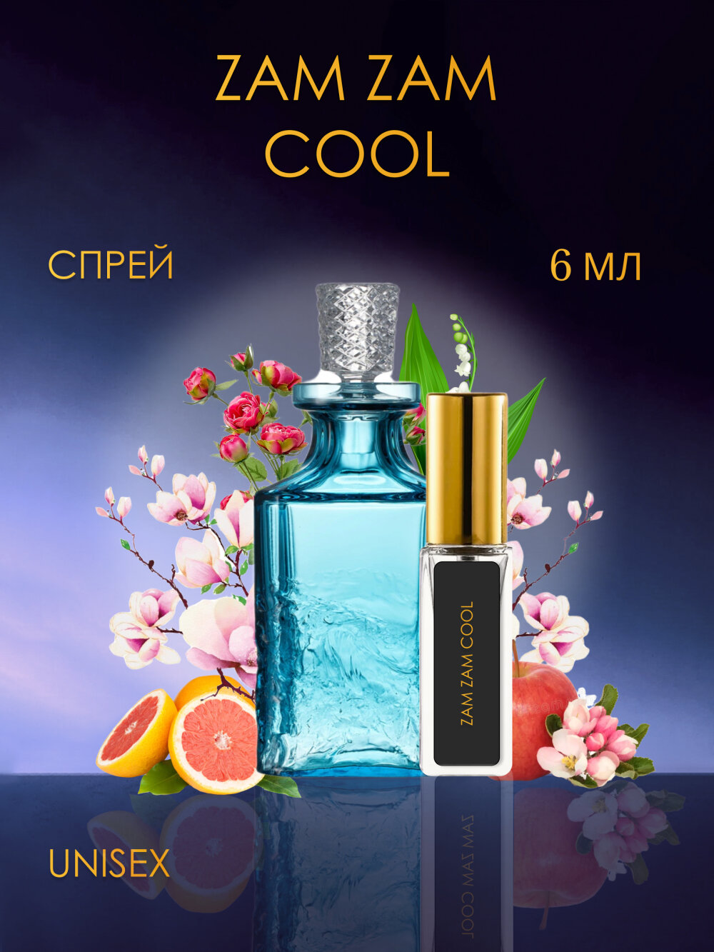 Zam Zam Cool — унисекс свежий древесно‑ароматический аромат с контрастным мятно‑цитрусовым характером. Подходит для дневного применения, особенно в тёплые сезоны и межсезонье: аромат подчёркивает современные свежесть, лёгкую чувственность и свободную индивидуальность.