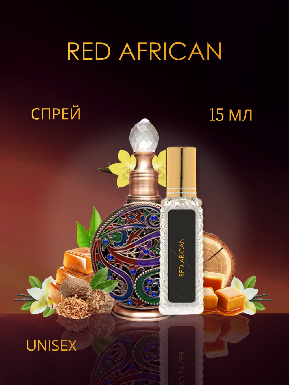 Al Haramain Red African — унисекс-аромат с тёплым восточно-древесным характером. Верхняя нота палисандра придаёт композиции сухую древесную свежесть с лёгкой пряностью. В средних нотах — мускатный орех и карамель создают насыщенное, сладко-пряное сердце с гурманским акцентом. Базовые ноты ванили, амбры и мускуса формируют тёплый, обволакивающий и слегка животный шлейф. Подходит для дневного и вечернего использования в прохладное время года. Аромат подчёркивает уют, тепло и спокойную уверенность.