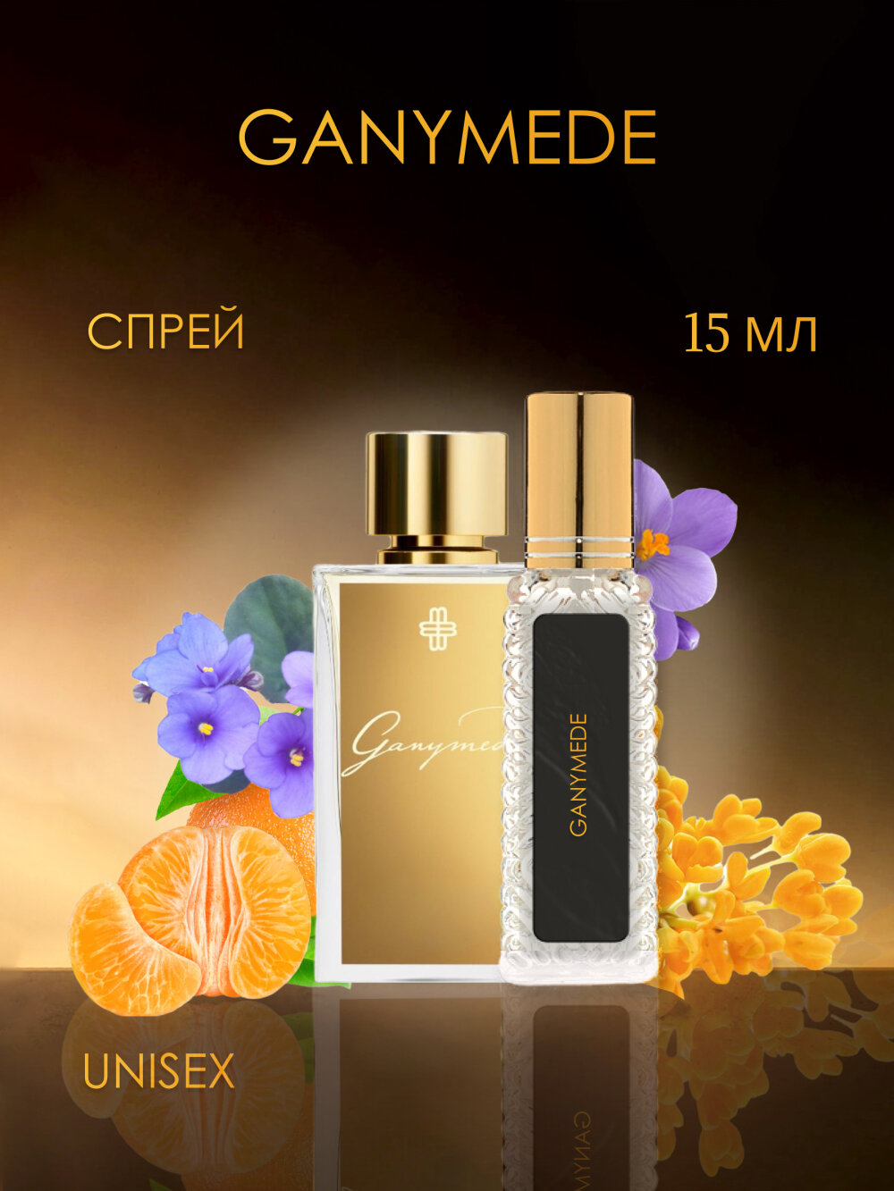 Деликатные прикосновения загадочной и чувственной фиалки в сочетании с травяной пряностью бессмертника завораживают в самом начале раскрытия его изумительной пирамиды. Спустя некоторое время эстафету первенства подхватывают вкрапления сладких долек мандарина и бархатистого османтуса, постепенно сменяясь чувственной глубиной базовых аккордов. Шлейф композиции Марк-Антуан Барруа «Ганимед» завораживает даже издалека, солируя мотивами харизматичного шафрана, натуральной замши и экзотического акигалавуда.
