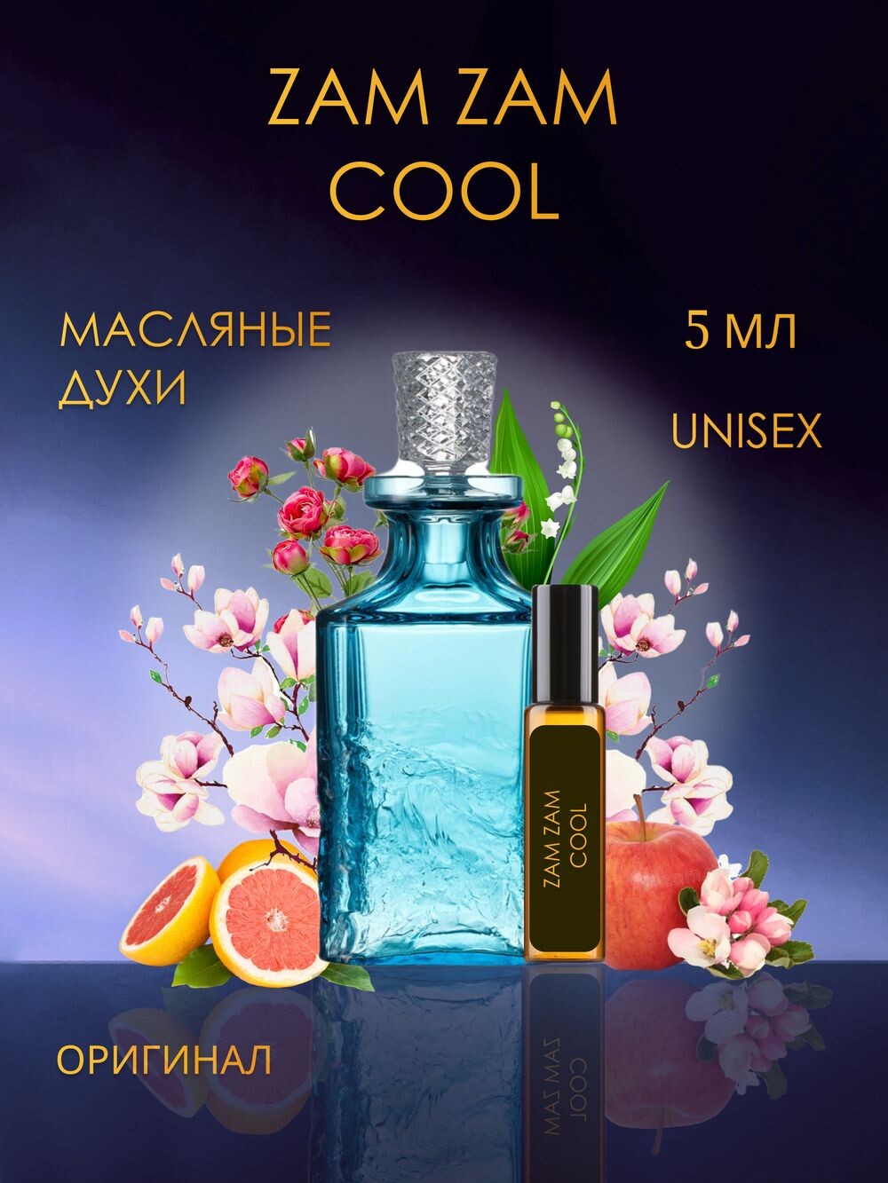 Zam Zam Cool — унисекс свежий древесно‑ароматический аромат с контрастным мятно‑цитрусовым характером. Подходит для дневного применения, особенно в тёплые сезоны и межсезонье: аромат подчёркивает современные свежесть, лёгкую чувственность и свободную индивидуальность. Верхние ноты: Огурец, яблоко, грейпфрут, магнолия Средние ноты: Тубероза, ландыш, роза, фиалка Базовые ноты: Сандал, амбра Группа ароматов: цветочно-фруктовые